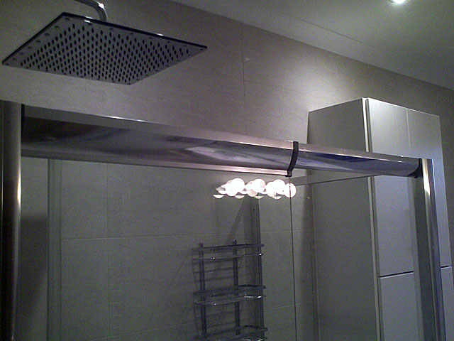 Bathroom remodeling project showing a modern design, new fixtures and an innovative use of space.